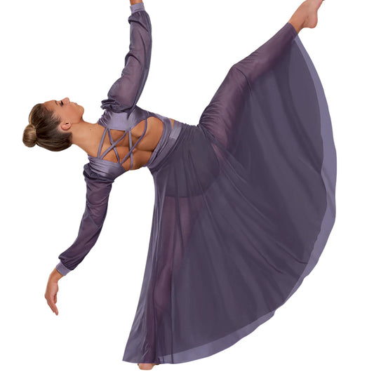 Off Shoulder Sleeves With Mesh Skirt Leotard