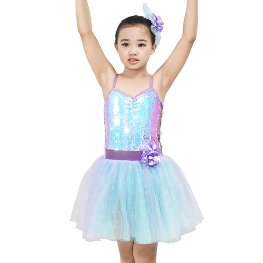 Blue Flowers Strap Ballet Dance Tutu Dress