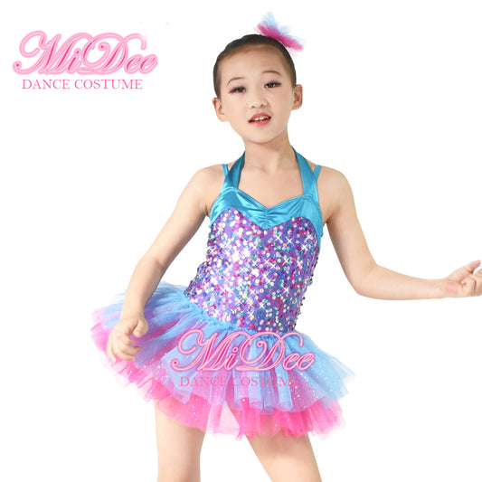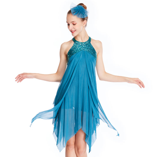 Sequin Turquoise Irregular Dance Dress
