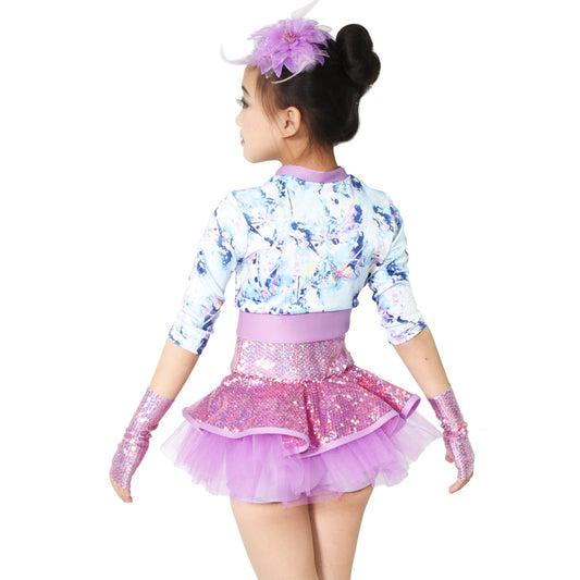 Girls Jazz Dance Outfits Biketard Sequins Army Print Jacket