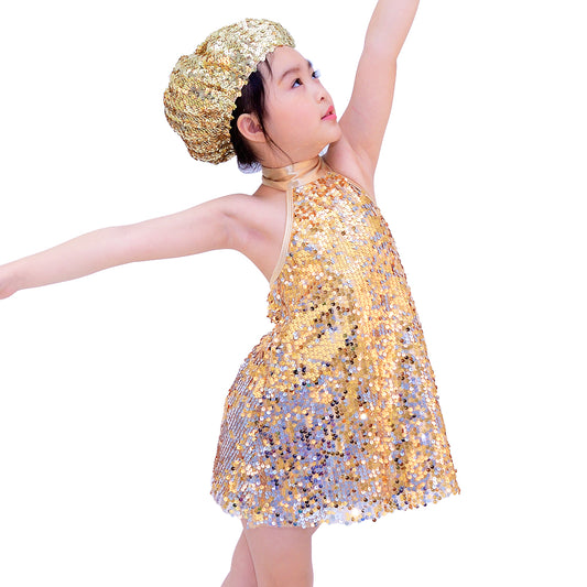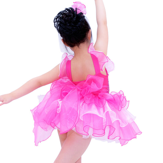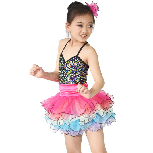 Floral Sequined Tutu Dress Dance Costume Performance Clothes for Girls