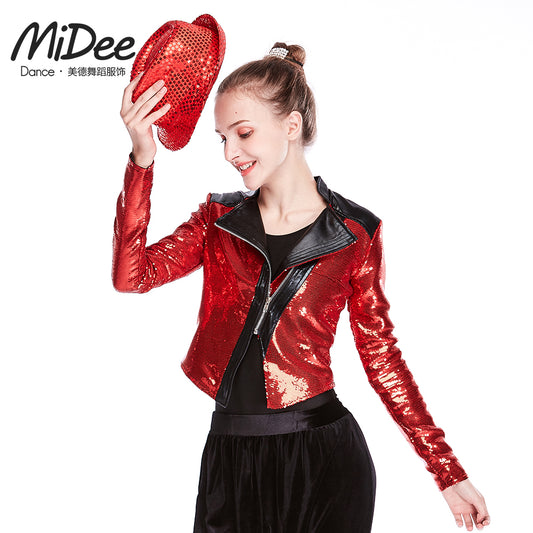 Cool Sequin Leather Jazz Crop Coat Top