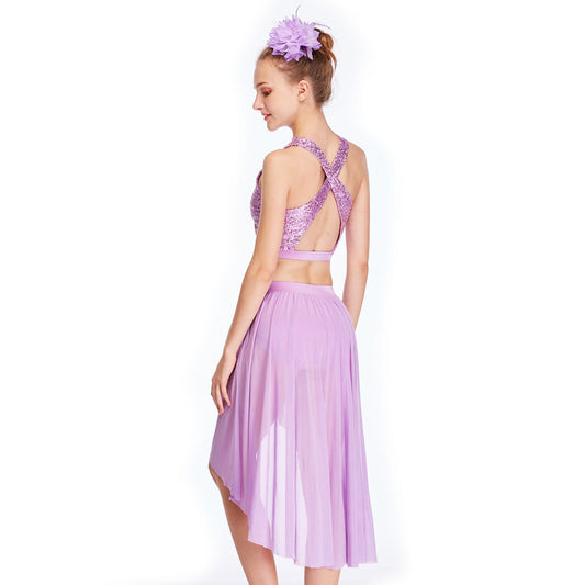 Purple Sequin Lyrical dance 2 Piece Outfit