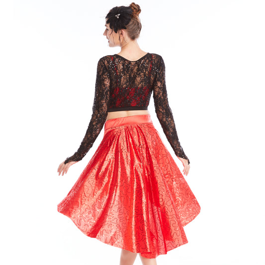 Lace Sequined Long-Sleeves Dance Dress Outfits