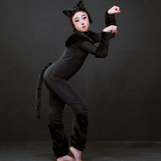 Black Leather Cool Girl Jazz 2 Pieces Outfit