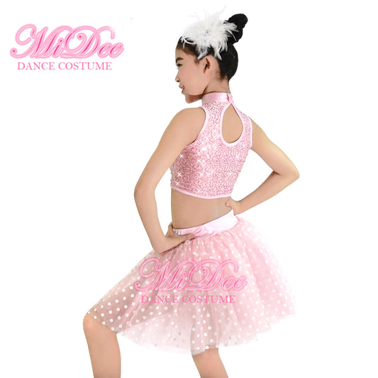 Sequins Leotards Mesh Skirt 2 piece Outfits