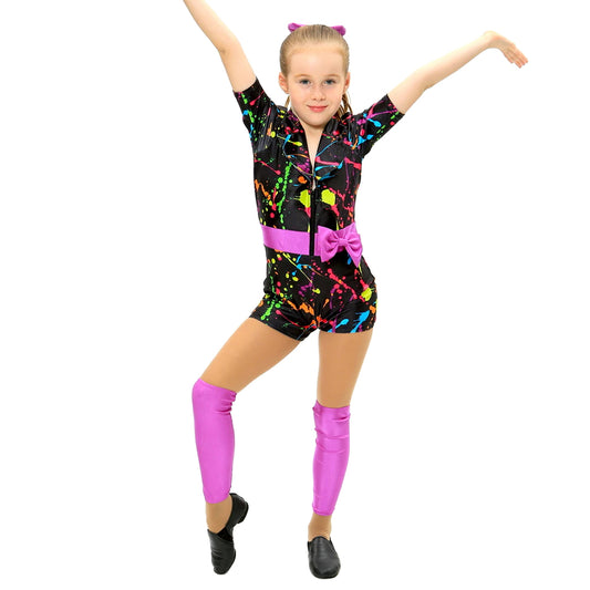Black Leather Cool Girl Jazz 2 Pieces Outfit